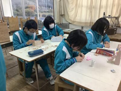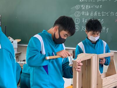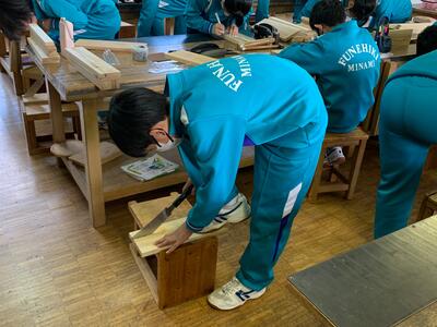 今年度も福島県の森林環境税を活用した取組の一環として、田村森林組合の方々に来校していただき木工クラフト制作を行いました。