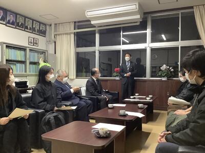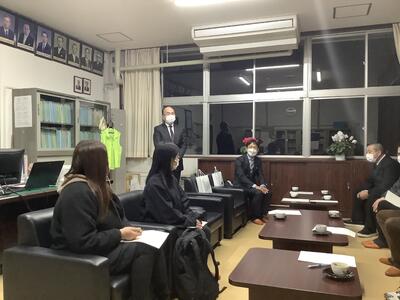 吉田前PTA会長様は第32代、高田前校長先生は第15代になります。本校の教育活動の充実に向け、ご尽力いただきました。吉田前会長様からはPTA活動の思い出やご苦労とやりがいを、高田前校長先生からは近況と船引南中校長時代の思い出を話していただきました。