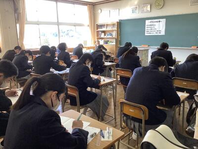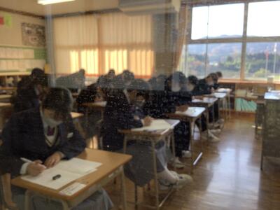 各学年の教室では集中して問題に向かう生徒の姿が見られました。答案の点数はもちろん気になるところですが、大切なのは今の自分を分析して、これからに向かうことです。わからなかった問題をやり直したり、学習計画を振り返ったりして、明日からの学習に生かせるようにしてほしいです。