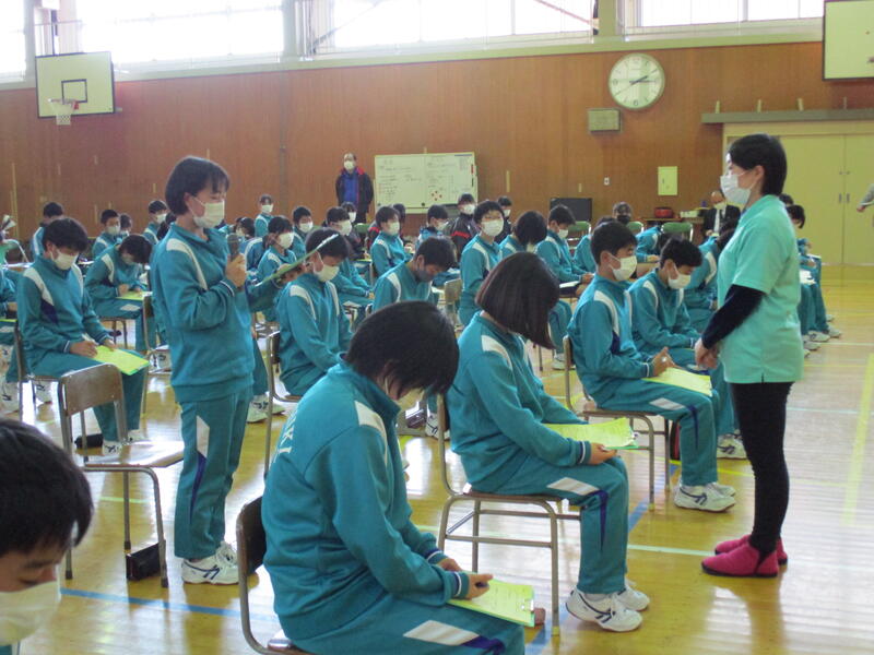 11月18日(木)の5校時に、田村市給食センターの管理栄養士の管野こふみ先生を講師にお招きして、食事についてお話をいただきました。