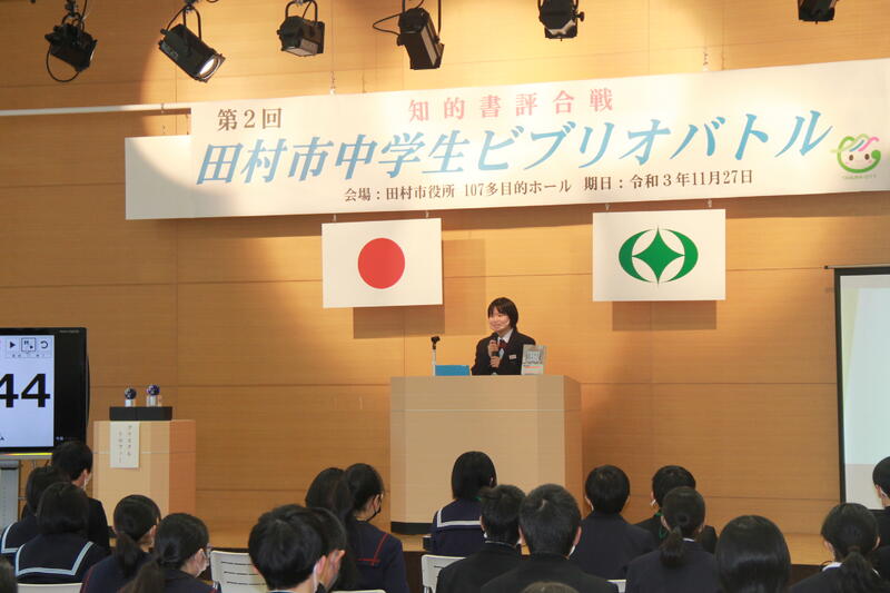 ビブリオバトルは今年で2回目となります。田村市の6校の中学校から選ばれた代表者7名による知的書評合戦が行われました。
