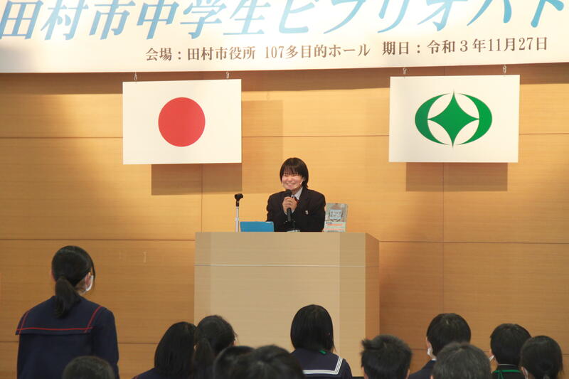11月27日(土)田村市役所にて、第2回田村市中学生ビブリオバトルが開催され、本校から発表者1名(3年女子生徒)、観戦者8名の生徒が参加しました。