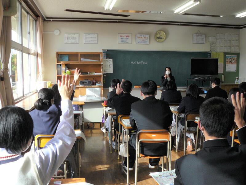 今日から12月になりました。本日4校時目3年社会の時間に租税教室を行いました。