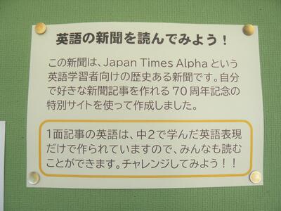まずは、2年教室の廊下にあるオリジナル英字新聞です。