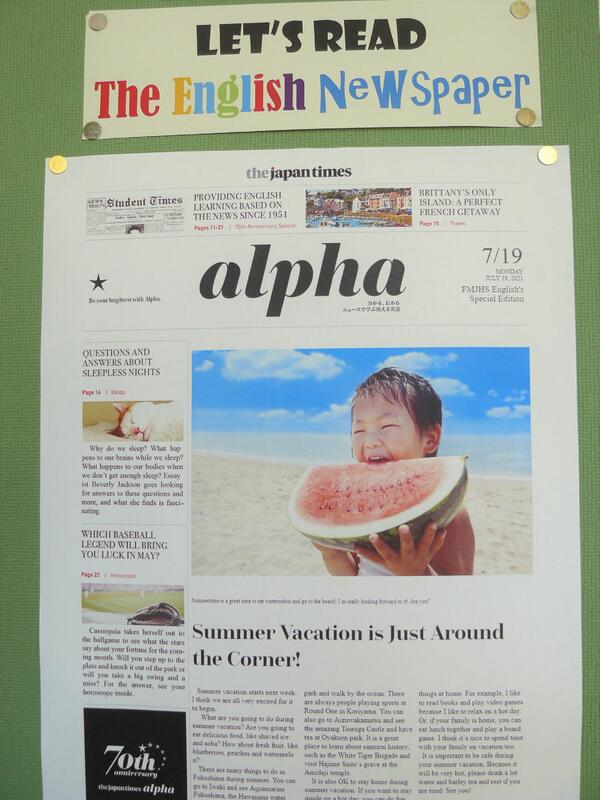 生徒の皆さんは、学習したことを生かしてぜひ記事を読んでみてください。見出しには「Summer Vacation is Just Around the Corner!」とあります。直訳すれば、「夏休みは角を曲がったところにある。」ですが、何と訳すのか自然になるのか考えるのも楽しいですね。