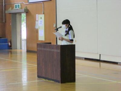 各学年の代表生徒からは、前期前半を振り返り、思った通りに生活できたことや、できなかったこと、その反省を生かして夏休みに取り組みたいこと等、それぞれの立場で発表してくれました。