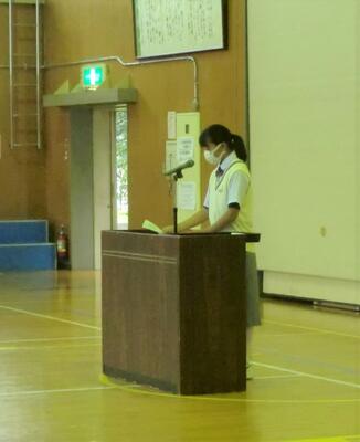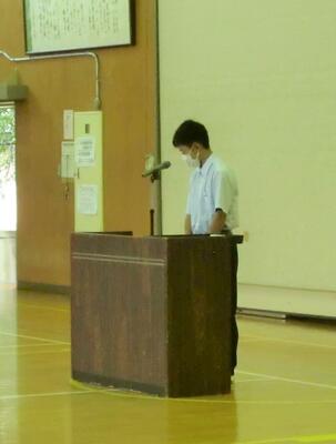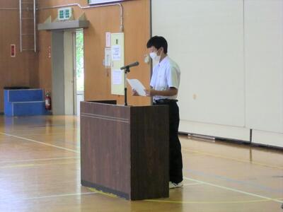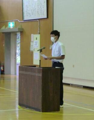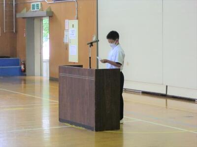 最後に、来週9月2日に行われる田村支部中学校駅伝競走大会に出場する生徒が決意表明を行い、生徒代表から激励の言葉がありました。本校からは男子2チーム、女子1チームが出場します。ベストを尽くして頑張りましょう!