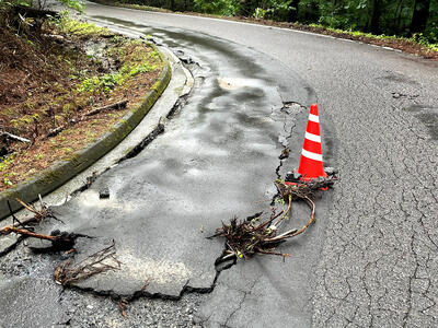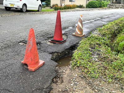 しかし、次の場所で道路の崩落等を確認しました。通行する際は十分気を付けてください。