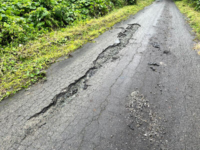 また、学校に上がる坂道も豪雨により陥没した状況です。