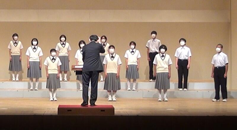 本校の合唱部員は、他校と比較すれば少ない人数でしたが、それに負けない位の声量と発声で、歌声を会場に響かせていました。休日や夏休み中に頑張った練習の成果が存分に表れ、伝えたい思いを全員が一つになって歌い上げていたと思います。