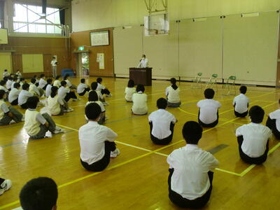昨日、8月25日(水)29日間の夏休みが明け、全校集会が行われました。
