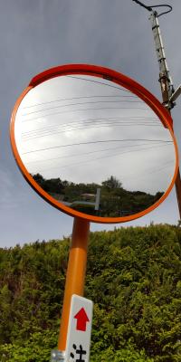 校門付近は左右が見えにくいため、ミラーが大活躍なのですが、左側のミラーにはしばらくの間、大きなひびが入っていました。