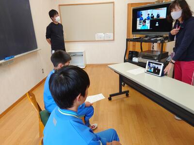 昼休みに、オンラインを使って、船引南小学校 船引南中学校の3校で交流を行いました。内容は、9月10日に予定されている、地区の美化活動についての話し合いです。芦沢小学校は体育環境委員会の委員長、副委員長の2人が代表で参加しました。どのように美化活動を行うのかを話していましたが、初めてのオンラインで、少し緊張もみられました。今後もオンラインでの交流を計画しています。新しい交流方法を生かしながら、よい出会いを作ることができるように支援を行いたいと考えています。