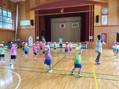 昨日は小学校がお出かけでしたが、今日は幼稚園児6名が船引南幼稚園での第3回目の交流保育です。園舎で始めの会を行った後、体育館で元気に楽しく活動できました。すわって待っている時の態度が素晴らしいと南幼稚園の園長先生からほめていただきました。