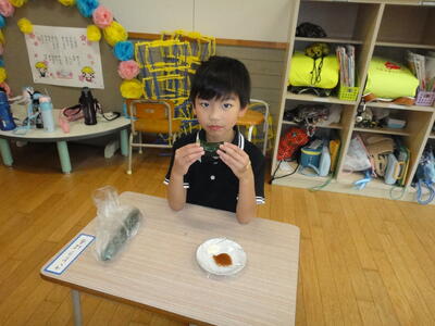 5月に始まったあしざわファームのキュウリがぐんぐん育ち、。1年生が今日、何本か収穫をしました。とれたキュウリは、今日の帰りの会の前にみんなで食べました。自然の恵みへの感謝の気持ちを味わいながら、おいしくいただきました!