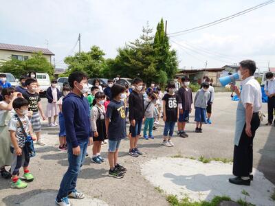 今日は小学校の全校遠足の日です。会津方面の旅です。本郷焼の絵付け、牛乳工場見学、そしてメインの只見線乗車。幼稚園児に見送られ、全員元気に出発しました。