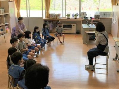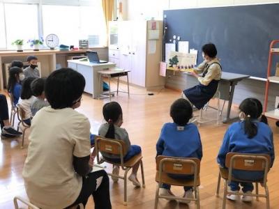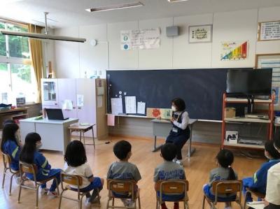 3校時に、どんぐりの会の皆さんによるおはなし会が行われました。今日は、大森さんと和田さんが1年生のためにいらっしゃいました。和田さんは今日が初めてのおはなし会ということで、大変緊張しながらも楽しみにしていたそうです。子どもたちも真剣にお話を聞き楽しんでいました。