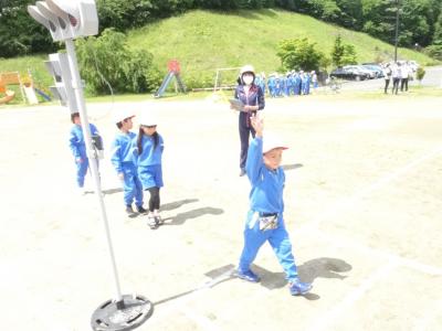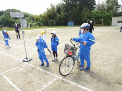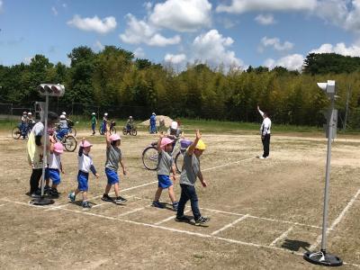 芦沢小の子どもたちが、交通安全に対する意識を高めるために交通安全教室を開きました。教室で低学年は信号機の正しい渡り方や歩道の歩き方など、また中・高学年は自転車の乗り方や事故についてDVDで学習し、次に校庭で実際に歩いたり自転車に乗ったりました。子ども達が普段何気なく乗っている自転車の乗り方や、歩いている道に潜んでいる危険について改めて考える機会になりました。