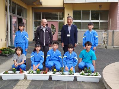 本日田村市人権擁護委員の猪狩さんと根本さんから、サルビア・マリーゴールドなどの「人権の花」をいただきました。6年生が児童を代表して花をいただき、宗像さんからお礼のあいさつをしました。人権擁護委員の方からは「人権の花」の活動のねらいについて説明していただきました。花をいただいた後に6年生がそれぞれプランターに花の苗を植えました。