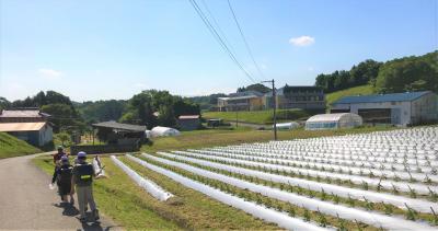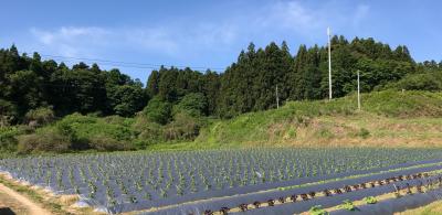 北区の男の子5人の登校の様子です。爽やかな晴天の下、整然と植えられたピーマンのように整列(?)しての登校です。さて、この畑にピーマンは何本植えられているのでしょうか?