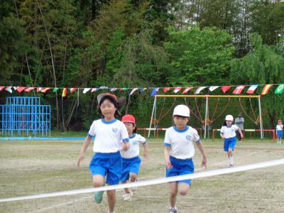 幼稚園と1.2年生は50m、3・4年生は100m走、5・6年生は150m走をせいいっぱい走りました!ご声援ありがとうございました!