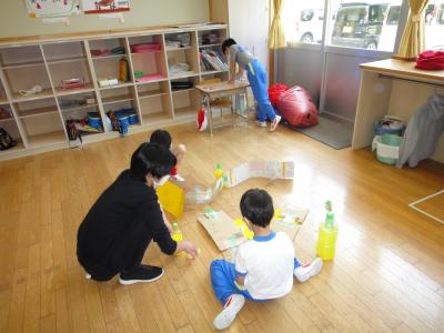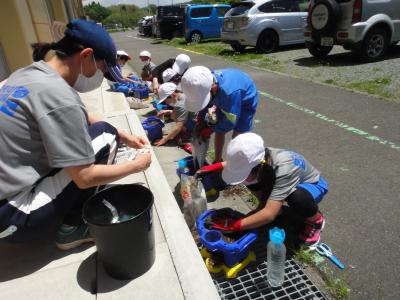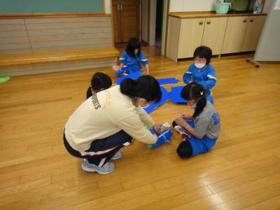 1・2年生が運動会で使った道具を、今日みんなで片付けました。段ボールのテープをはがしたり、ペットボトルの色水を処分したりしました。最後の片付けまで力を合わせることができました。