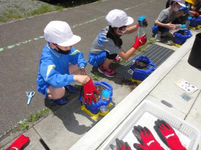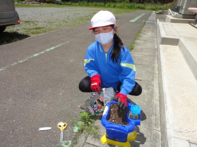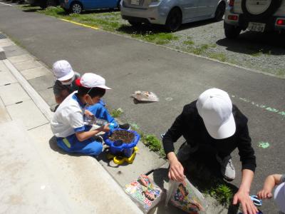 今日の生活科の時間に、1年生はあさがおの種まきをしました。自分の植木鉢に土や肥料を入れてから、指で優しく穴をあけ、種をまきました。何色の花が咲くのか、種はどれぐらいできるのか、楽しみですね!