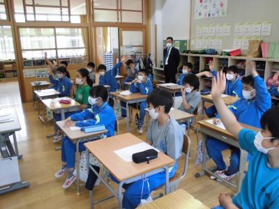5月25日(火)、5・6年生が租税教室を行いました。郡山法人会より3名の講師の方をお招きし、税金について学びました。