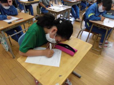 1年生はひらがなの書き方を学習しています。今日は、「を」の練習です。何度も練習して上手に書けるようになりました。