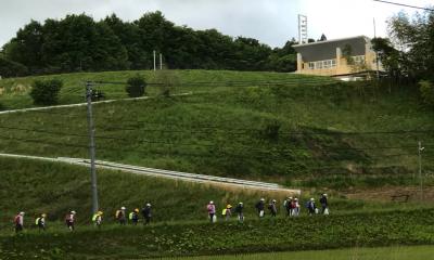 東区の子どもたちの朝の登校の様子です。今年は人数が増え2つの班で登校しています。
