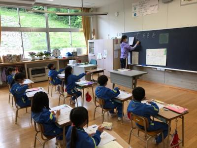 2021年5月26日 09時00分1年生はひらがなの書き方を学習しています。今日は、「を」の練習です。何度も練習して上手に書けるようになりました。