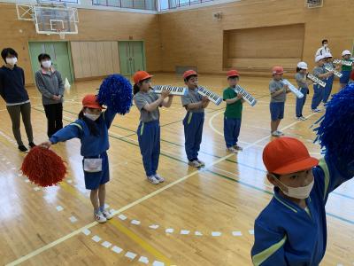 お昼休みに鼓笛の練習をしました。あいにくの雨だったため、体育館での練習になりましたが、仕上がりは上々だと思います。幼稚園生も応援に来てくれました。当日の演奏ご期待ください!