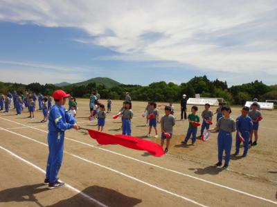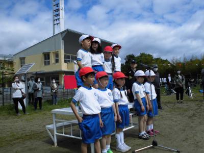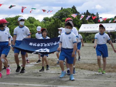 2021年5月23日 14時25分開会式では、6年生から入場行進が始まり、最後は幼稚園生までが堂々とした態度を見せてくれました。はじめの言葉は1年生が、また2年ぶりの優勝杯返還も行われました。どの係の子も、上手にできました。