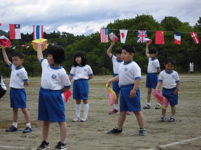 開会式では、6年生から入場行進が始まり、最後は幼稚園生までが堂々とした態度を見せてくれました。はじめの言葉は1年生が、また2年ぶりの優勝杯返還も行われました。どの係の子も、上手にできました。
