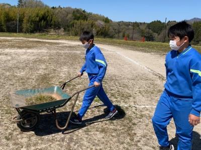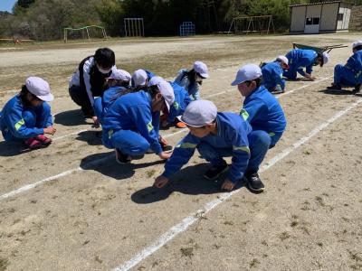 今日のお昼休みには、全校生で草むしりを行いました。前回はトラックの内側を中心に行いましたが、今回はリレーゾーンを中心に行いました。全校リレーで転倒することなく走れるように、みんなで黙々と取り組みました。今回も後始末は体育環境委員の6年生がしてくれました。
