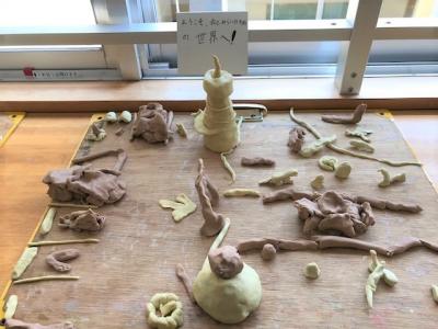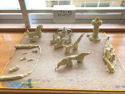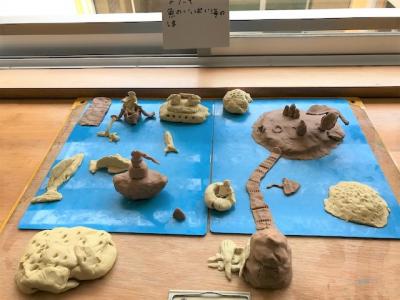 3・4年年生の図工での作品です。グループごとにテーマを決め作成しました。