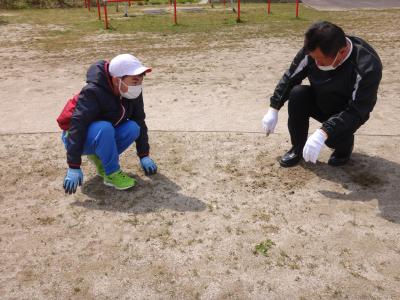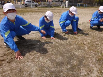 今日の昼休みに、全校生で草むしりを行いました。来月には運動会もあるので、これからどんどん走る機会が増えます。後片付けは、体育環境委員会の委員長さんが責任を持って行ってくれました。みんなできれいにすると気持ちがいいですね!