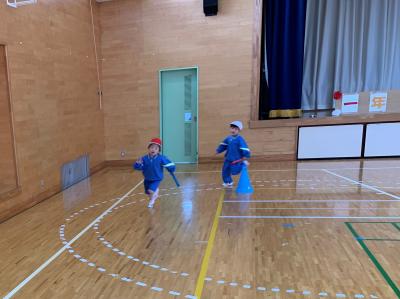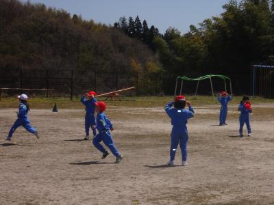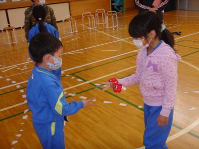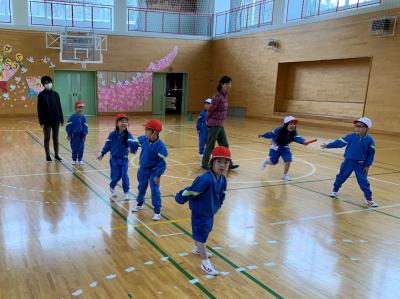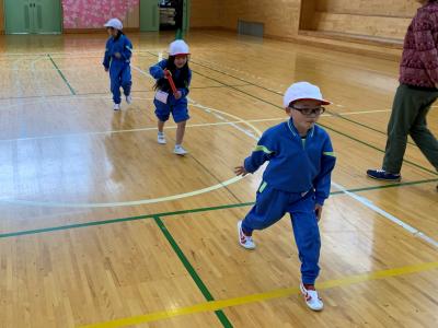 運動会の種目に、「全校リレー」があります。1・2年生は、バトンパスが上手にできるように、今日の体育で練習しました。練習を繰り返すと、あっという間に上手になり、最後は体育館を1周して競い合いました。本番に向けてがんばろう!