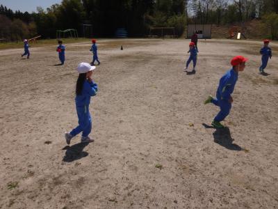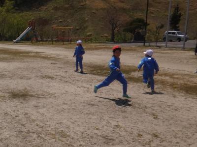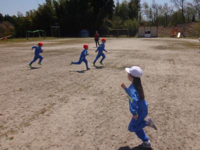 今日の1・2年生の体育の最後に、鬼ごっこをしました。1回目は2年生の3人が鬼になって、1年生が逃げました。2回目の鬼は、「やりたい人!」と聞くと3人が名乗りをあげてくれました。鬼さんも、逃げる人も校庭をたくさん走り回りました。