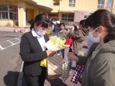 離任式を終えて、最後の見送りでは、一人一人が先生方と最後のお別れをしました。