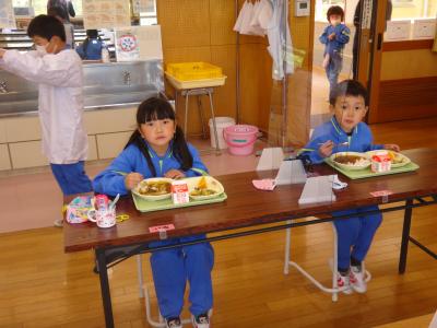 2021年5月6日 13時09分今日は今年度初の給食です。ということで、1年生が初めて給食当番をしました。スプーンを配ったり牛乳をお盆の上に乗せたり配膳をしたりと、みんな協力して上手に出来ました。その後の給食は、とってもおいしくいただきました。ごちそうさまでした!