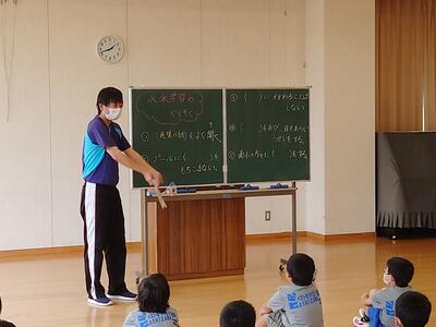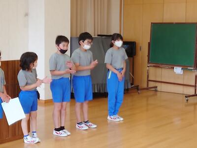 今日の全校集会の時間に、「水泳学習始まりの会」がありました。担当の先生から、水泳学習の時の約束についてみんなで確認したり、学年代表の子が、今年度の水泳学習のめあてを発表したりしました。天気がよければ明日から水泳学習が始まります。自分のめあてに向かってがんばります!