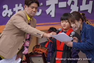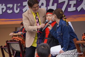 演奏終了後、MCのお二人からインタビュー。子どもたちは感想を話すことに・・・
