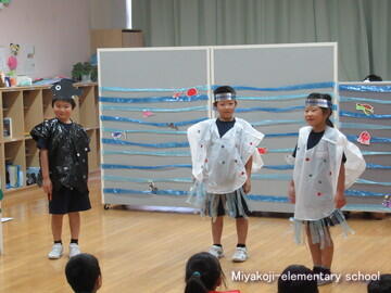 2年生は、国語で学習した「スイミー」を少しアレンジして劇にしました。