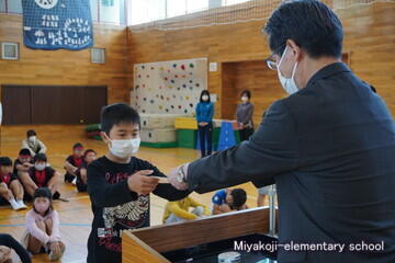 先月末に実施した校内漢字・計算コンテストにおいて「満点賞」を獲得した児童を表彰しました。