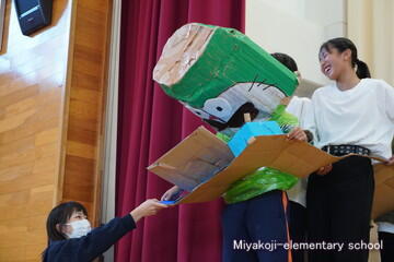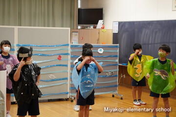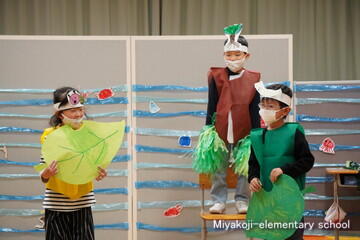 今日は、1年生と2年生の劇を見ました。国語で学習したことをさらにふくらませてセリフにしています。