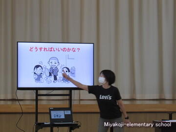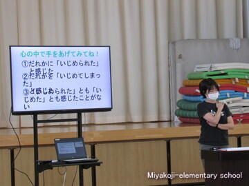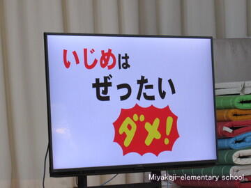今日のすずらん集会は、生徒指導担当から「いじめ根絶」について子どもたちに問いかけました。