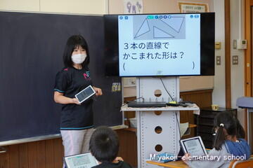 ”ロイロノート”というアプリを使い、今、学習している図形に関する問題を送り、それに答えるという形で何問か挑戦してみました。