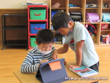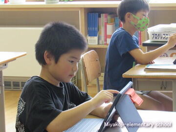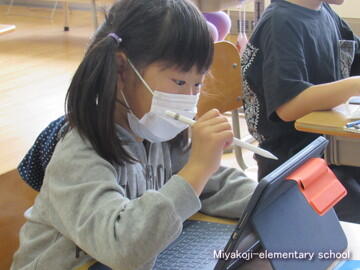 iPadの操作には少しずつ慣れてきているものの、問題を見て、答えを書き込んで、担任に送り返すという流れに、最初はうまくできずに困っている様子も見られました。ICT支援員にも手伝っていただき、徐々に操作のしかたを覚えていきました。