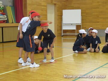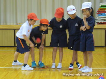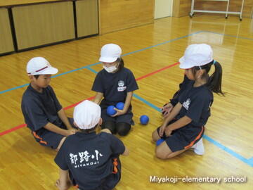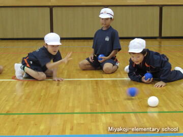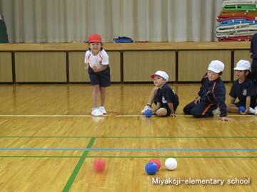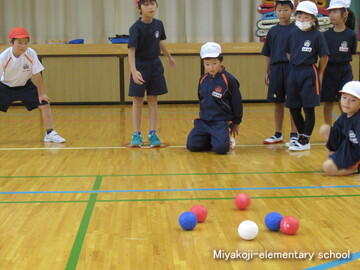 「1・2年生にもパラリンピック種目を体験させたい!」と思い、金メダルを獲得した中の1つでもある「ボッチャ」を体育の時間に行いました。子どもたちの中にはテレビで見て、ボッチャについて知っている子もいました。